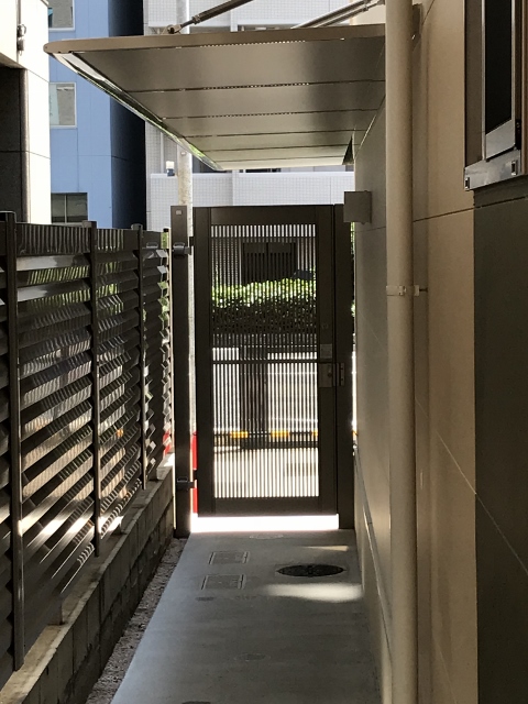 国道沿いには店舗が面し、その脇から奥へと進み住宅の玄関へと続く。 表通りから距離を取る事で、住宅部分の落ち着きと静けさを確保した。