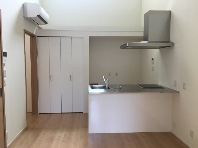玄関とワンルームの出入り口付近にすっきりとまとめる。