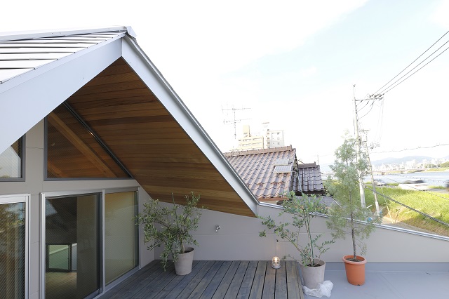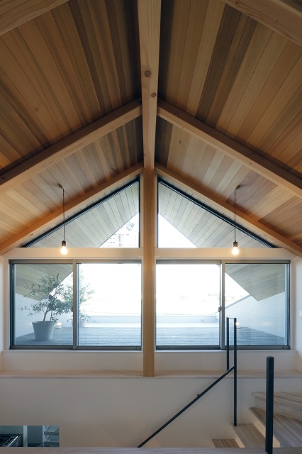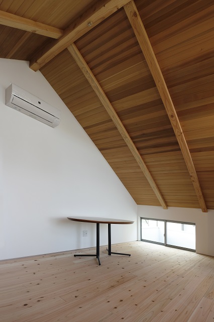 三角屋根はウエスタンレッドシダー羽目板張り