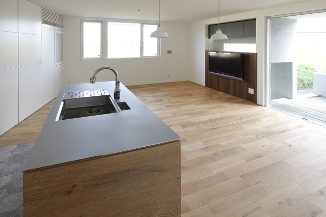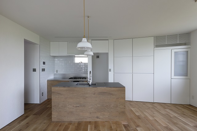 スイス漆喰塗りの壁。 松岡製作所のオーダーキッチン。