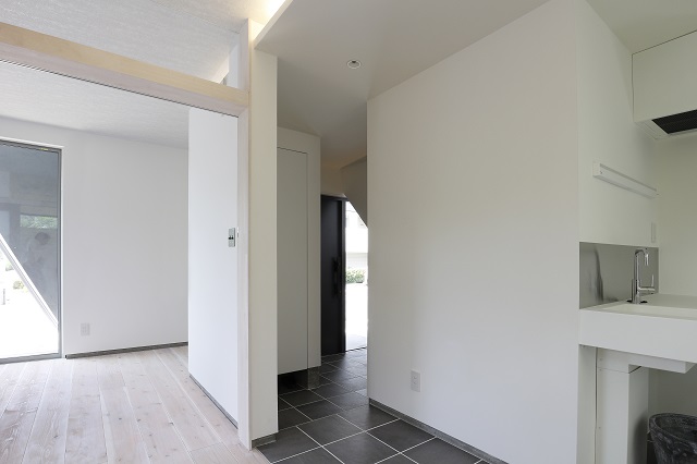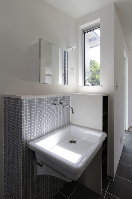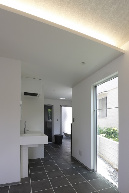 ◆洗面スペースは、区切らず廊下の一角に。
