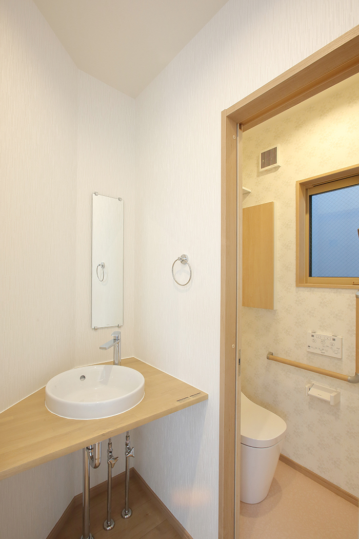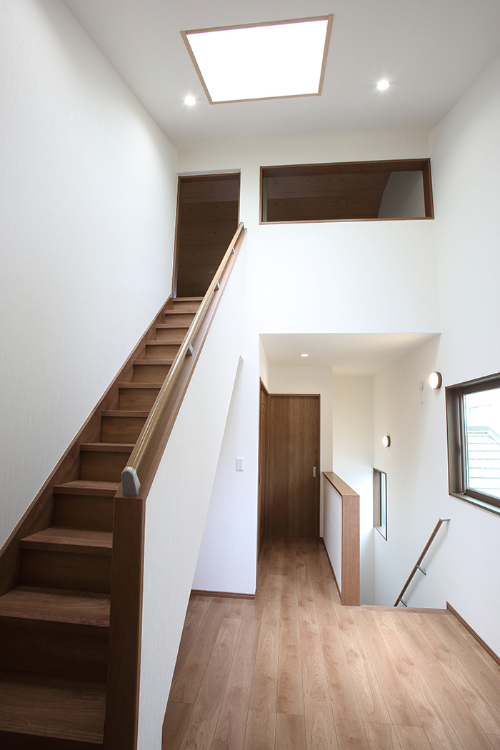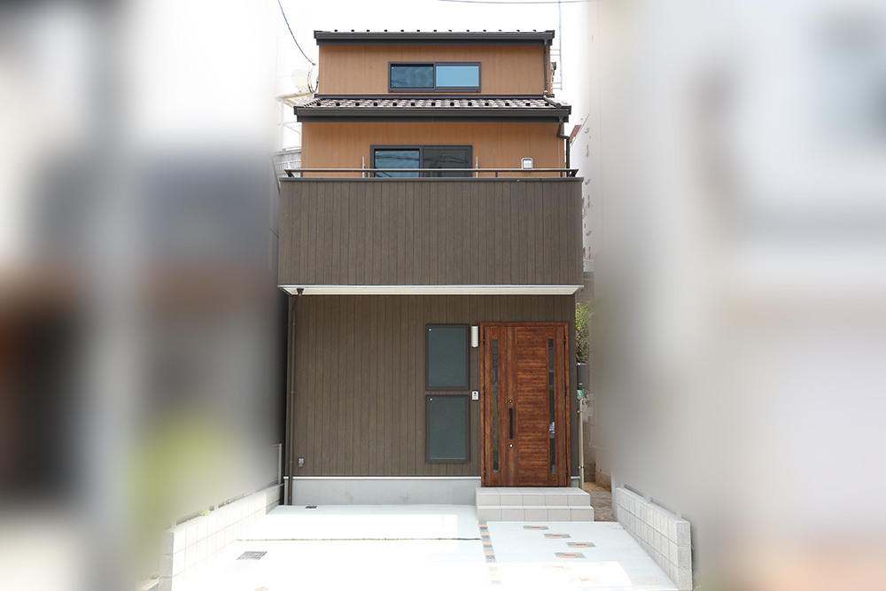 都会の狭小地に建つ、ロフト付き木造2階建て住宅、趣のある和風の外観です。