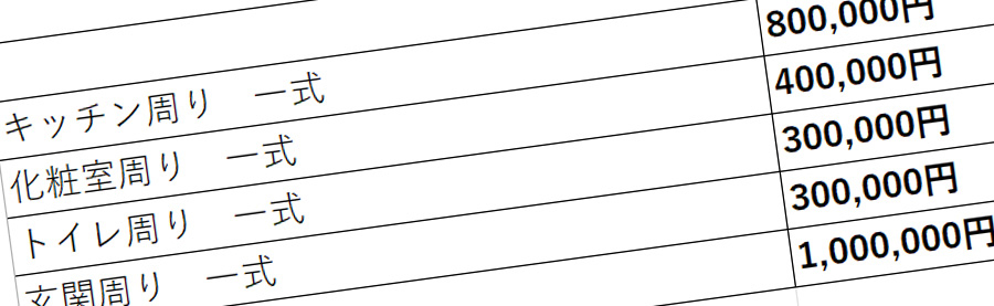 会社によっては「一式」でまとめられている見積もりもよくあります。そうなるとどこを調整して良いのかもわからないのと、はたしてそれが妥当な内容なのかが不明なまま進むことになります。私たちの見積もりは1棟ずつ構造計算を行った結果を詳細と合わせて御見積書に記載します。