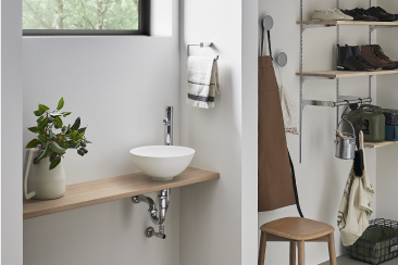 いつまでも終息しないコロナ禍。人々の生活は変わり、家で過ごす時間が増え、暮らしに必要な物も変化しました。あったらいいなと思うものは人それぞれ違うものですが、家の中に余計な菌を持ち込みたくない!!は共通の思いですよね。対策として玄関ホールの片隅に小さな洗面台を設けてしっかり手洗いを済ませてからお家に入るのはいかがでしょうか。