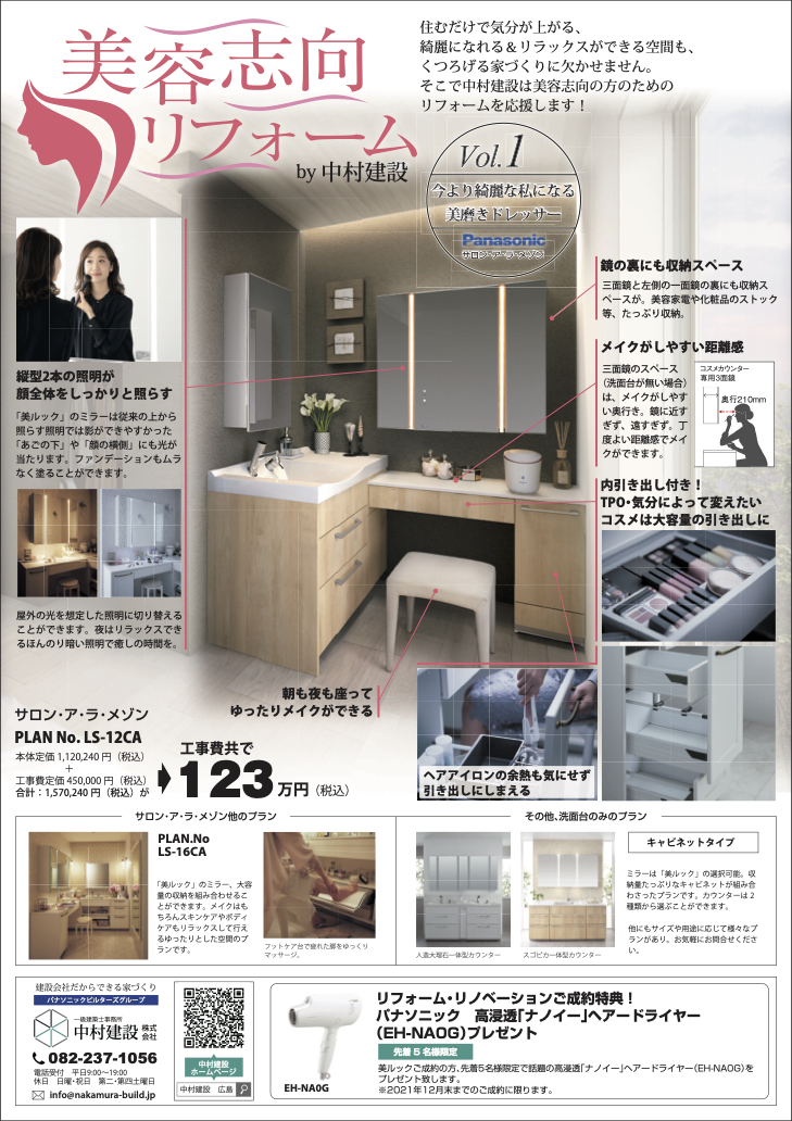 そんな中、中村建設ではエステサロンのような空間を自宅に再現し癒しの時間を楽しむ「美容志向リフォーム」をご提案させていただく事にしました。
