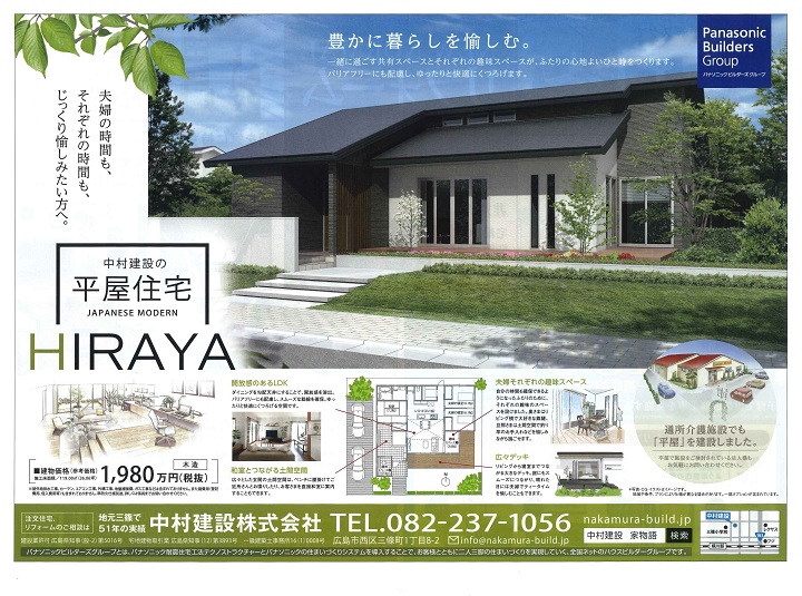 今回の広告の表面のテーマは「豊かに暮らしを愉しむ平屋住宅」
